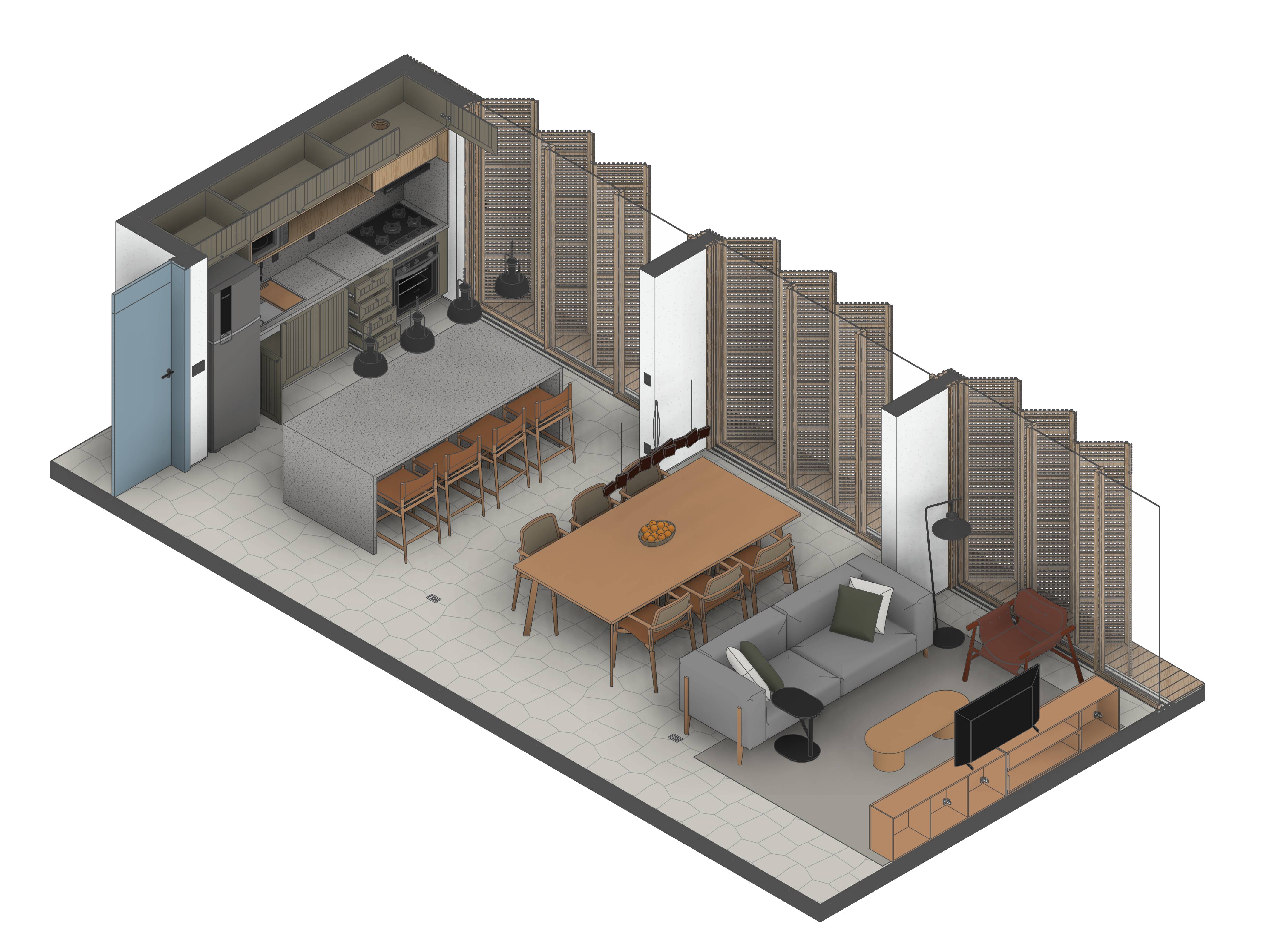 Ao longo das mais de 270 aulas do curso, o aluno desenvolve um projeto arquitetônico completo, passando por todas as etapas do projeto executivo, com foco em construtibilidade, padronização, compatibilização e detalhamento técnico, exatamente como exigido no mercado.